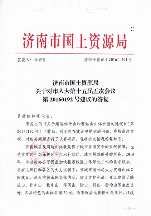 關(guān)于轉(zhuǎn)發(fā)濟南市國土資源局對我公司市人大代表的答復