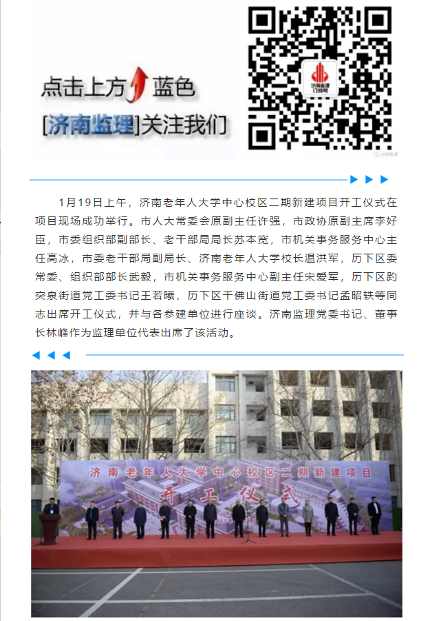 濟(jì)南監(jiān)理參加濟(jì)南老年人大學(xué)中心校區(qū)二期新建項目開工儀式