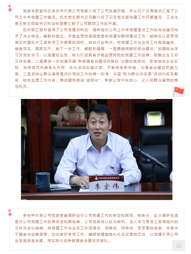 濟南市委市直機關(guān)工委調(diào)研組蒞臨濟南監(jiān)理指導黨建工作