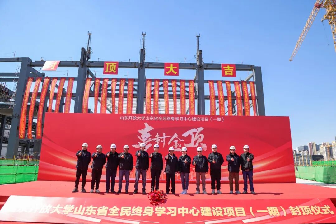 喜封金頂——山東開放大學(xué)山東省全民終身學(xué)習(xí)中心建設(shè)項(xiàng)目(一期)文體館順利封頂